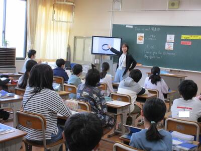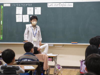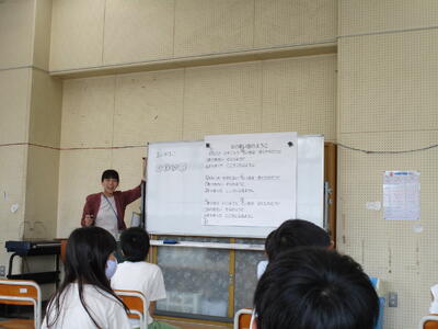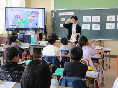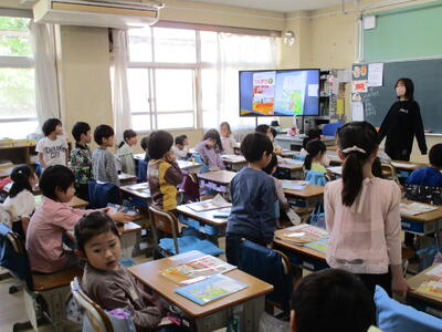 4年生、外国語指導員の先生と「天気」についての学習をしていました。楽しく取り組み、発音もきれいでした。