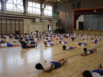 5年生は校庭で運動会のソーラン節の練習でした。動きが素早く一生懸命取り組んでいました。6年生は体育館で組体操の練習をしていました。練習を始めたばかりなので、腕立てふせの姿勢も辛そうでしたが、頑張る姿に逞しさを感じました。