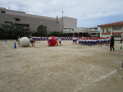 今日は、全校で予行練習がありました。開会式や閉会式、ラジオ体操、応援歌、大玉送りの練習をしました。ラジオ体操では、体育委員が前に立ち、皆のお手本となりました。今年から入った応援歌「ゴーゴーゴー!」は赤と白に分かれて歌う部分もあり、子供たちも気持ちが盛り上がっていました。今年から始まった「大玉送り」では、2回練習をしましたが、1回目は赤が勝ち、2回目は白が勝ちました。子供たちはとても楽しかったようで「もっとやりたい」「もう一回!」の声が上がっていました。