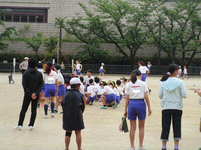 6年生、運動会での組体操の最後の仕上げに校庭で立ち位置や動きを確認しました。業間休みには、5.6年の代表によるリレーの練習がありました。どの子も、走るのがとても速かったです。