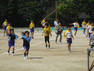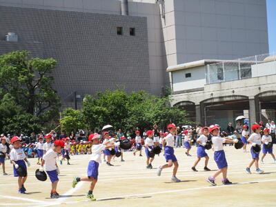 今日は、いよいよ待ちに待った運動会です。晴天の中、運動会のスローガン「最後まで輝き続け全力で」を掲げ、演技や競技、応援にと子供たち全力で取り組みました。結果、2点差で紅組が優勝しました。精一杯頑張った子供たち全員に拍手を送りたいと思います。