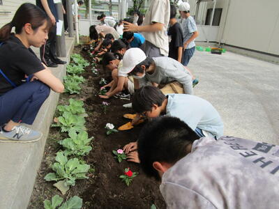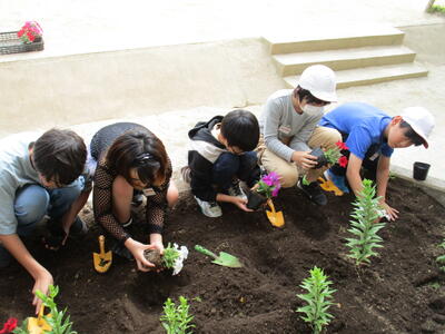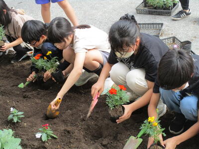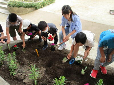委員会活動では、栽培委員会が市川市から配られた「人権の花」や種を二つの花壇に植えました。花ボランティアの方が、花壇を耕したり堆肥をまいたりして植えるまでの下準備をしてくださいました。ありがたいです。