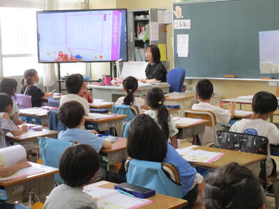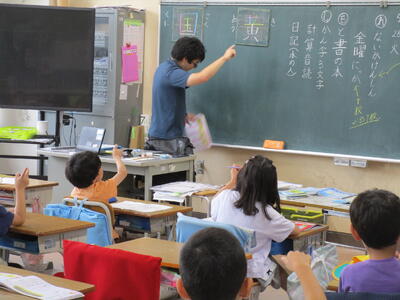 2年生、漢字の学習で、形や書き順も丁寧に確認していました。