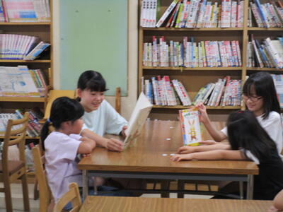 1年生、業間休みには、雨が降っていたので、教室でビデオを見たり、図書室に本を借りに行ったり、静かに過ごすことができました。