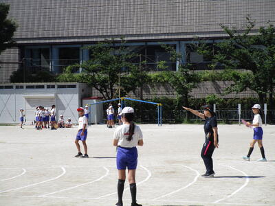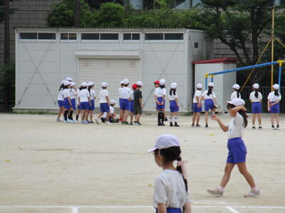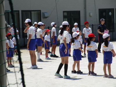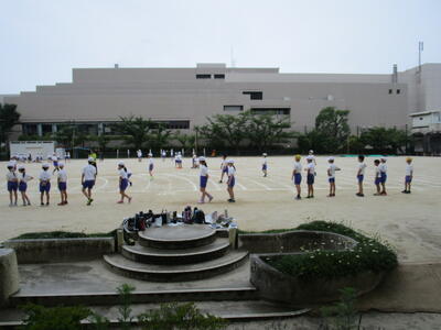 6年生、1校時にソフトボール投げをしていました。3校時には、1年生のソフトボール投げのお手伝いをしていました。6年生が大きな掛け声をかけて、一緒に首や腕を回すなどの準備運動をする姿を見ると、本当に頼もしさを感じます。
