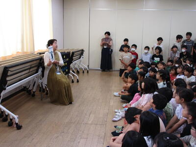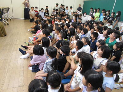 業間休み、きらきら星さんが、佐野洋子作「おじさんのかさ」の絵本を読み聞かせをしてくれました。梅雨の時期にぴったりな、雨を楽しめるような内容でした。途中、子供たちも一緒に声を出したり、笑ったりと、とても素敵なひと時でした。きらきら星さんの業間読み聞かせは、実に5年ぶりだそうです。今日は、雨も降っていなかったのに大盛況で、満員でした。