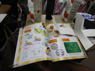 4年生、図工のひらめきコーナーのページを使い、牛乳パック等を使って、自分の作りたいものを作っています。小物入れや、ブーメラン、ロケット、こまなど、調べながら作っていました。