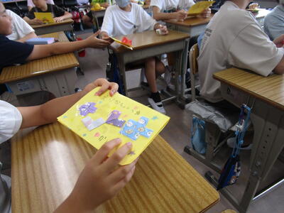 1年生、本を読んだり遊んだりくれているペアの6年生に、お手紙を届けました。お手紙には、「いつもやさしくしてくれてありがとう」「ほんをいっぱいよんでくれてありがとう」など感謝の言葉とともに、折り紙や絵が添えられていました。