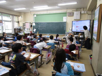 4年生、外国語活動で「Do you have~?」の学習をしていました。先生からの質問に子供たちも、「Yes, I do」「No, I don't」のどちらかを選んで大きな声で答えていました。