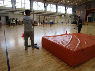 陸上部の朝練が今日から始まりました。今日は6年生が校庭での測定の後は体育館に移動して、高跳びの測定をしました。