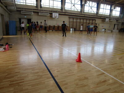 早朝、陸上部の練習がありました。校庭では短距離走、走り幅跳びの練習、体育館では走り高跳びの練習がありました。今週末に大会を控えて、子供たちも練習に気合いが入っていました。