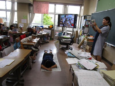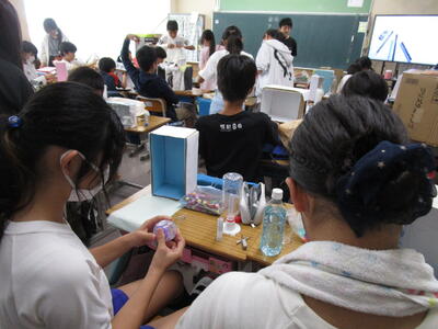 ゲストティーチャーを招いてシャボン玉教室を行いました。自分の顔より大きなシャボン玉をたくさん作りました。風で流されたシャボン玉は3階建ての校舎よりも高く、大和田小学校の空に舞い上がりました。