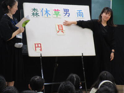 3.4校時には、3年生対象にきらきら星さんのよるお話会がありました。バックミュージックを演奏しながら、大型絵本やパネルを使い、楽しくお話を伝えてくれました。聞いている子供たちも、お話の世界にひたっていました。