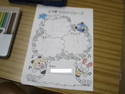 今日から後期が始まりました。1年生、後期のめあて(べんきょう・生かつ・うんどう)を考えていました。「こくごのかん字をがんばる」「あさのしたくをはやくする」「きゅうしょくできらいなものでも一口食べる」などのめあてをしっかりと書いていました。