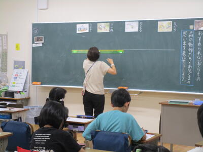 2年生「さけが大きくなるまで」、3年生「わすれられないおくりもの」を読んで、ワークシートにまとめていました。