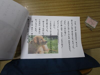 1年生、今日の朝学習の時間は、6年生が国語の学習で1年生のために作った物語を、読んでいました。犬が主人公の話やヒーローが主人公の話など、起承転結もよく考えられていました。