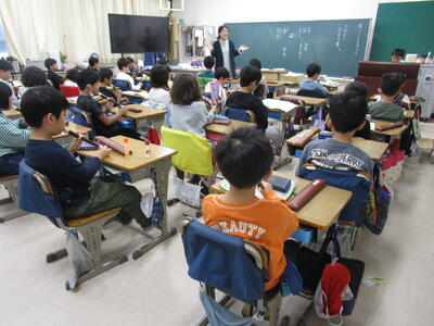 4年生は習字の授業、5年生は理科の授業を、専科の先生が1校時からしっかりと行っていました。