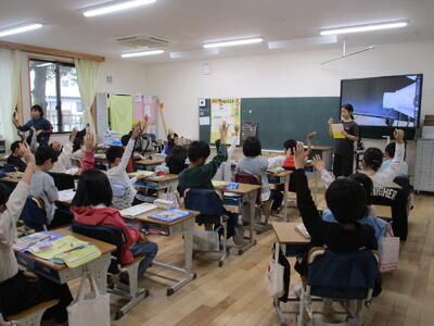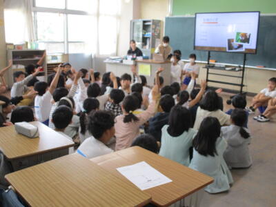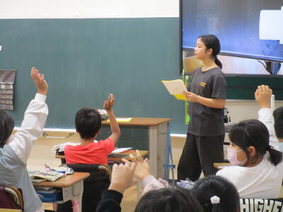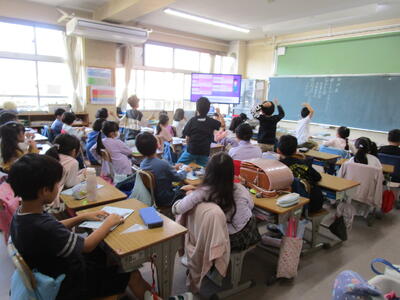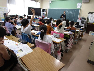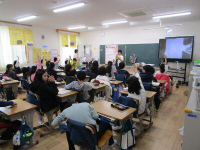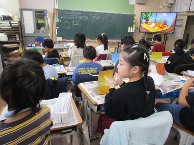4年生、外国語活動で「Do you have~?」の学習をしていました。先生からの質問に子供たちも、「Yes, I do」「No, I don't」のどちらかを選んで大きな声で答えていました。