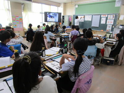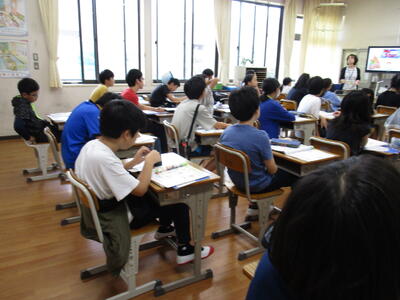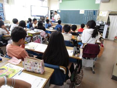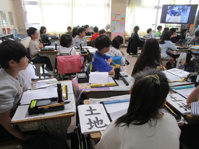 4年生は習字の授業、5年生は理科の授業を、専科の先生が1校時からしっかりと行っていました。