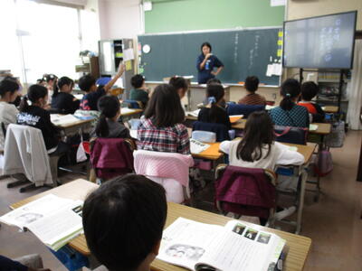 4年生、学年で道徳の授業を同じ時間に、担任の先生を交換して行っていました。一つの題材で4クラス授業ができるので、同じ題材でもクラスによって反応が違うので、教員にとっても学びがあります。