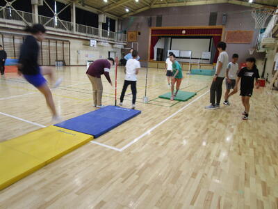 早朝、陸上部の練習がありました。校庭では短距離走、走り幅跳びの練習、体育館では走り高跳びの練習がありました。今週末に大会を控えて、子供たちも練習に気合いが入っていました。