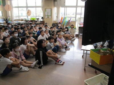 ゲストティーチャーを招いてシャボン玉教室を行いました。自分の顔より大きなシャボン玉をたくさん作りました。風で流されたシャボン玉は3階建ての校舎よりも高く、大和田小学校の空に舞い上がりました。