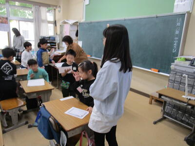 1.6年生も朝学習の時間に交流活動をしていました。1年生が国語の学習でつくった「いきものクイズ」をペアの6年生に出題したあとに、クイズブックをプレゼントしていました。教室にいた6年生、振り返りを全体でしていたクラスもあり、「すごくしっかりとクイズができていた」「難しいクイズでわからなっかった」と内容も充実していたことがわかりました。