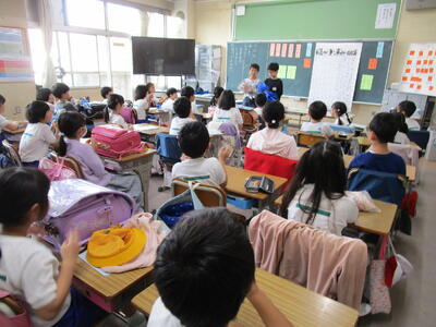 5.6校時、ゲストティーチャー13名を招いて6年生のキャリア教育の授業がありました。消防士、梨農家、行政書士、幼稚園園長など様々な職種の方が来校して、体育館や教室、特別教室を使って、紙芝居や画像を見せながら、それぞれ仕事の話をしてくれました。最後に皆さんから一言ずつ、全体に話をする場面では「夢をあきらめないで」「好きが仕事にならなくても、得意なことが仕事になる」「うまくいかなくても、そこからまた違う道がひらける」「とにかく、明るく元気よく」・・・などのメッセージをいただきました。6年生にとっては、貴重な学びの時間になりました。