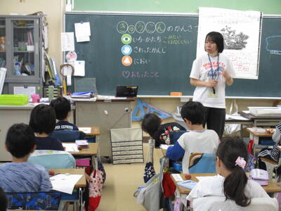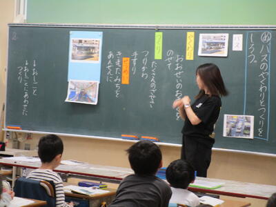 1年生、国語で「はたらくじどう車」を学習しているクラス、生活科で球根の観察をして、植木鉢に植える準備をしているクラス、校庭でボール投げをしているクラス。どのクラスの子供たちも、活動に熱心に取り組んでいました。