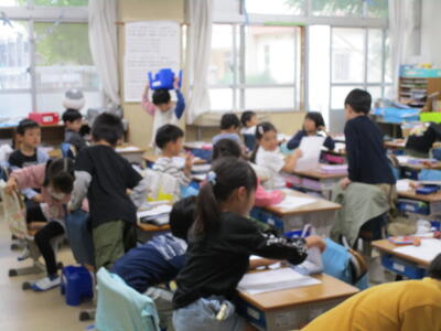 4年生、国語で、2年生と一緒に楽しめる新スポーツを考え話し合いました。2年生の教室で、日時とやる内容を伝えていました。2年生もとても楽しみにしています。