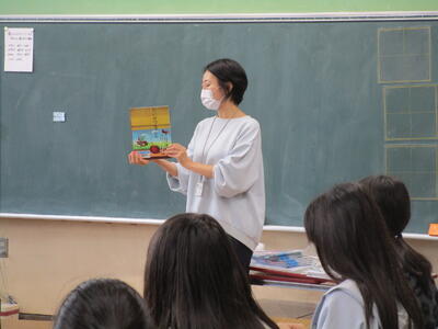 今朝、朝読書の時間にきらきら星さんのメンバーの方が、6年生3クラスの教室で、読み聞かせをしてくれました。絵本でしたが、内容も6年生にふさわしいものだったので、子供たちは、真剣に聞いていました。読み方や本の見せ方など、6年生が1年生に読み聞かせするときに参考になりますね。