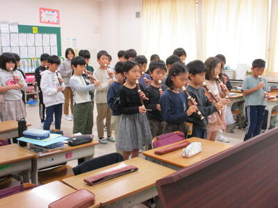 3年生、朝から元気な歌声とリコーダーの演奏が聞こえてきました。11月の校内音楽会の練習が始まったようです。