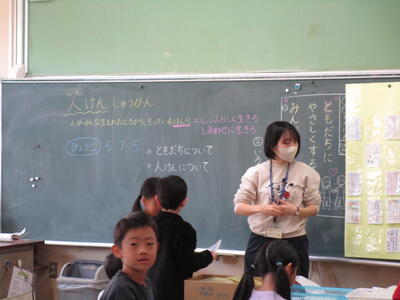 ちょっと難しい言葉ではありますが各学級、道徳の授業と関連させて標語を書いたり、自分が心がけたいことを宣言したりして人権について考えています。