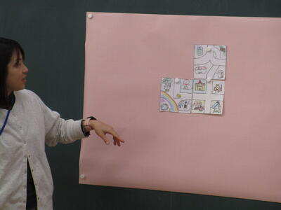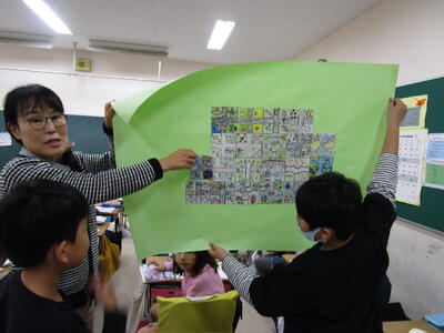 1年生、国語のスイミーの学習で感想交流をしたり、スイミーマップを作ったりと、集中して取り組んでいました。