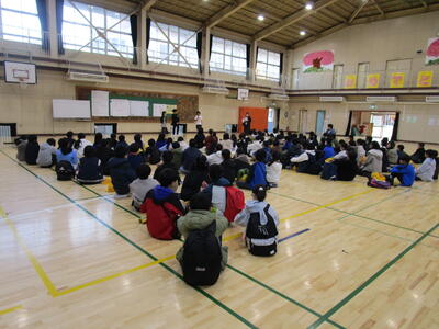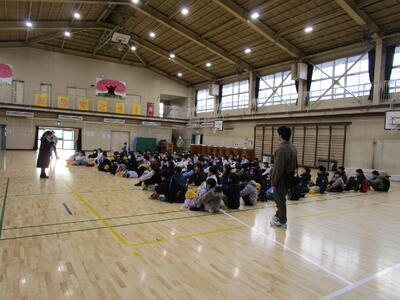 体育館で行われるはずの「冬休みを迎える会」ですが、インフルエンザによるお休みが少し多くなっているクラスがあったため、放送で行いました。冬休みの生活についてでは、5年生の子供たちからも生活上の注意がありました。教室を回るとよく聞いていました。表彰の時は、各クラス拍手をしたり喜んだりしていました。