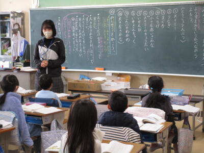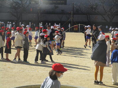 このところ、業間休みや昼休みは、兄弟学年で大繩を練習する子供たちで校庭が大賑わいです。再来週、長縄記録会があるので、担任の先生も一緒に練習に熱心に取り組んでいました。