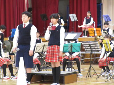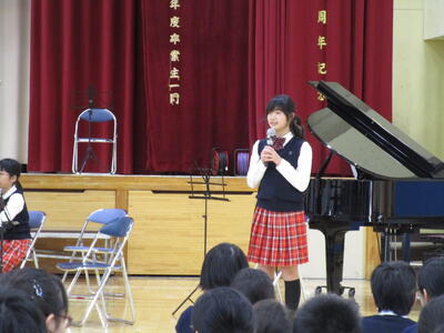 4年生、「あわてんぼうのサンタクロース」を鈴やタンバリン、大太鼓などの楽器も使って、元気よく歌っていました。