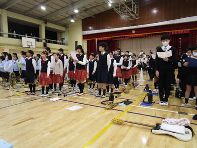 土曜日ですが、今日は八中ブロックの地区別音楽会が第八中学校の体育館で行われました。出演は第八中学校、鶴指小学校、平田小学校、大和田小学校、4校の吹奏楽部です。大和田小学校は、「威風堂々」「ダンスホール」「Departure」の3曲を披露しました。大和田小はもちろんですが、どの学校も、練習の成果を発揮して素敵な演奏でした。最後に、八中の演奏で、「ふるさと」を全員で歌いました。ブロックの学校で集まったのは、久しぶりですが、とてもいい時間をすごすことができました。