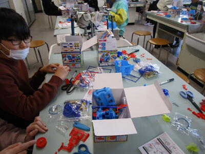 5年生、理科室で電磁石の学習です。キットの中の方位磁針をまず作っていました。