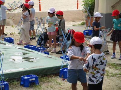 1年生、国語で問いと答えの学習をしているクラス。算数で時刻の学習を、時計をもちながら確認しているクラス。生活科で朝顔のつるでリースを作っているクラス。どのクラスもとても一生懸命活動していました。