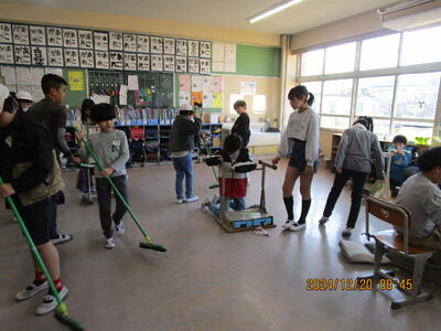 12月20日(金) 投稿日時 : 2024/12/20 編集長 昨日で冬休み前の給食が終わり、今日は短縮3時間です。2年生、のびのびルームでおもちゃ大会をやっていました。手づくりのおもちゃにいろいろな工夫があり、とても楽しそうでした。 5年生、英語の授業でクリスマスの歌を歌っていました。一生懸命、大掃除をしているクラスもありました。「きれいにするとすっきりする」といいながら、机の裏のごみをとっている子もいました。