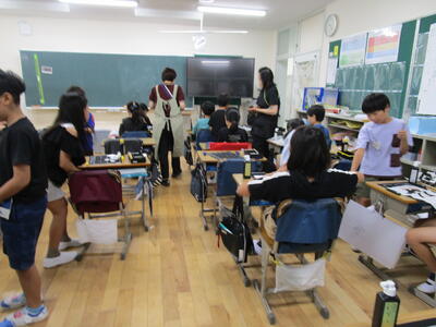 2年生、今日は中学校のALTの先生が各クラス1時間ずつ、教室に入って、英語で授業をしています。自己紹介を画像とともにわかりやすくしているので、子供たちも張り切って活動していました。6年生は、神田外語大学の学生さんが英語の本の読み聞かせをした後に、意味や発音の練習をしていました。日頃から、英語の学習に取り組んでいるので、とても、スムースに授業が進んでいました。