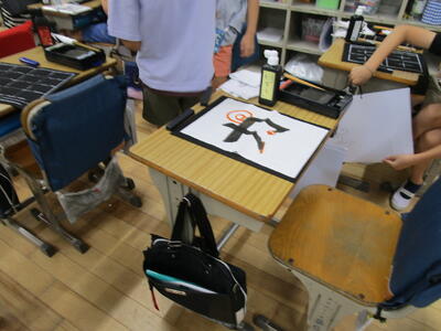3年生、今日は習字の講師の先生が「おれ」の学習で「力」を書きました。片付けもずいぶんスムースになりました。