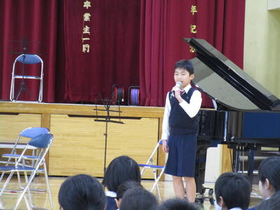 土曜日ですが、今日は八中ブロックの地区別音楽会が第八中学校の体育館で行われました。出演は第八中学校、鶴指小学校、平田小学校、大和田小学校、4校の吹奏楽部です。大和田小学校は、「威風堂々」「ダンスホール」「Departure」の3曲を披露しました。大和田小はもちろんですが、どの学校も、練習の成果を発揮して素敵な演奏でした。最後に、八中の演奏で、「ふるさと」を全員で歌いました。ブロックの学校で集まったのは、久しぶりですが、とてもいい時間をすごすことができました。