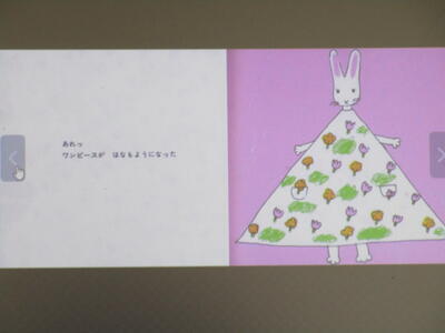 2年生、きらきら星おはなし会がのびのびルームでありました。「わたしのワンピース」では、主人公のうさぎちゃんの着るワンピースが背景と同じに変化していくお話で、子供達も、模様が変わっるたびに笑っていました。「ともだちほしいな おおかみくん」は、うさぎやきつねたちに怖がられていたおおかみが、最後にはほかの動物たちと仲よくなるお話です。ペープサートで、動きもあり、最後に歌を歌う場面では、子供たちも拍手をしながら、大きな声で歌っていました。とても、素敵な時間でした。