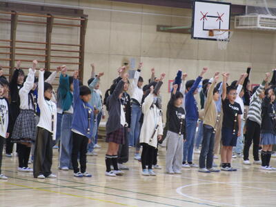 2年生「おはようのエール」を体育館で元気に歌っていました。最後の部分だけ、手拍子をつける練習をしていました。