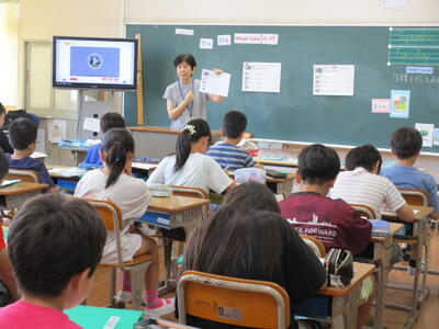 4年生、外国語活動で英語で時刻を聞いたり、答えたりする学習をしているクラス。算数のそろばんの学習で、地域の方が3名入り学習を進めているクラス。総合的な学習で、体に重りをつけるなど高齢者体験をしているクラス。どのクラスもいきいきと活動していました。