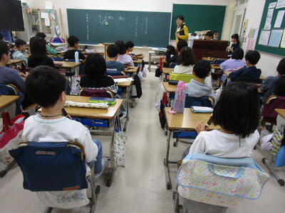 3年生、教室で、リコーダーや歌の練習に取り組んでいました。3年生は、国語で絵文字の学習をしていますが、非常口のマークを、1枚の折り紙で折ってきた児童がいて、驚きました。