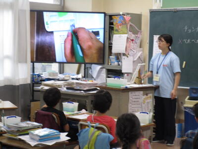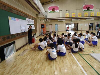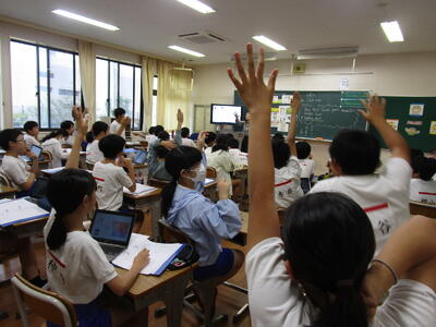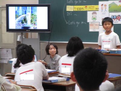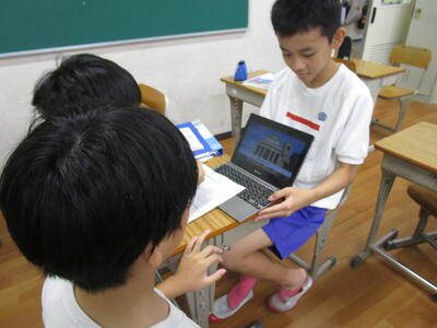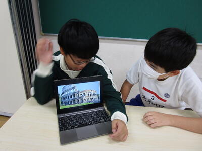 6年生、英語で「自分の行きたい国を紹介しよう」をテーマに、屋台方式で発表する人と聞く人に分かれて英語で活動していました。ABCルームとのびのびルームで少人数で発表を行った後に、クラス全体の前で、発表したい人や推薦された人が、3人ほど発表しました。選んだ国の歴史的な建造物や美しい自然、おいしい食べ物など、画像をみせながら、とても工夫した発表でした。聞いていると、その国に行きたくなりました。英語でのやり取り、コミュニにケーション力の高さ、さすが、6年生ですね。