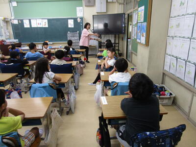 4年生、外国語活動の学習で、英語での曜日の言い方、発音の仕方を練習していました。